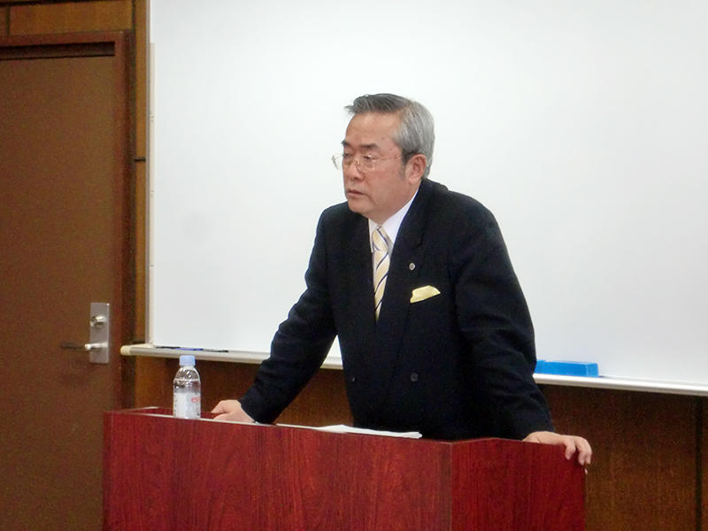 4月15日(土)は今回で9回目の登壇となる自民党政務調査会審議役の田村重信講師でした。田村講師は「憲法と安全保障」と題し、 トランプ政権発足を踏まえ、今後の日本の安全保障の在り方について述べ、その上で、日本国憲法の特徴と問題点、自衛隊との関係性について分かり易く解説しました。 さらに本学卒業生の立場から「『幸せ』というものは『学ぶこと』で享受できる。常に謙虚な気持ちを持って、読書を通じて知見を吸収し、人間性を磨いてほしい」と、 後輩に向けて温かいエールを送って下さいました。