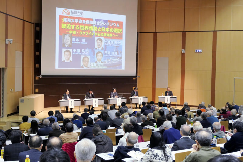 今回のシンポジウムは、森本敏拓殖大学顧問・元防衛大臣、小野寺五典元防衛大臣・衆議院議員、小原凡司笹川平和財団上席研究員、門間理良拓殖大学海外事情研究所教授をパネリスト、佐藤丙午拓殖大学海外事情研究所長を司会として行いました。