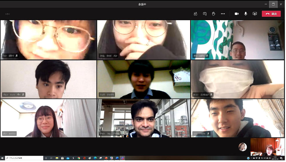 Bekka students in the intermediate Japanese language class are enjoying their "Japanese" class through the PC screen. Following the teacher's instructions, they are expressing their opinions in Japanese in front of the whole class, doing group works, and writing in the chat room. Since the learning tools differ depending on the subject, the Bekka students might check each other every day on LINE and chat in Teams, saying "ZOOM or Teams?" Even though the students come from different countries and speak different native languages, they all share the same goal of studying Japanese in the current situation with COVID-19 pandemic.