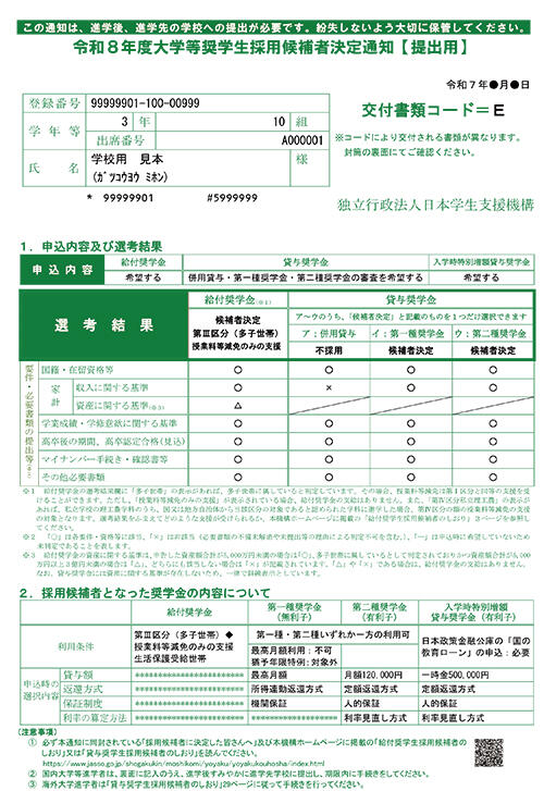 対象:高校等で日本学生支援機構奨学金の予約採用を申込み、【採用候補者決定通知】を受け取った方