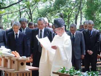 はじめに斎主が修祓の儀を行い、次に御霊に対し祝詞を申し上げました。
