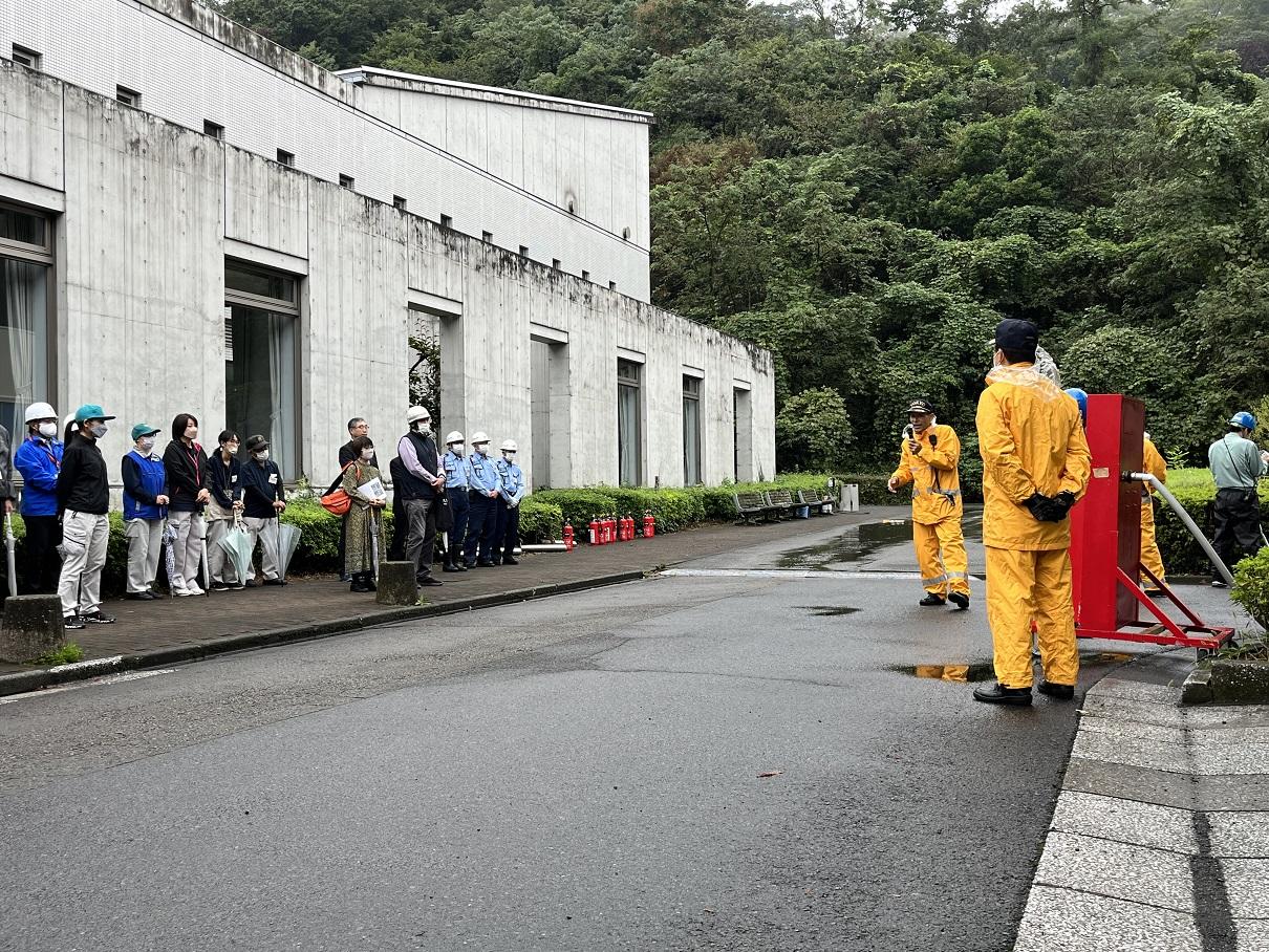 今回は八王子消防署浅川出張所の消防隊員の指導の下、「水消火器を使用した消火訓練」及び「消火栓を使用した放水訓練」を行いました。