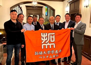 本学学友会はハノイに支部を持ち、現地で活躍する日越の卒業生が定期的に交流を行っています。特にベトナム人の方は、起業して経営者となっている方、 現地官公庁に勤務する公務員、日系進出企業の幹部というように、色々な分野で活躍されている、まさにベトナムの活気をそのまま実現したような元気な集まりとなっています。岡戸理事長の挨拶では、今回ベトナム支部では初の開催となる在学生を対象に学友会本部と現地支部の支援による卒業生訪問研修の御礼、教育ルネサンス2030の状況についての説明、並びに更なる学友会ベトナム支部の活躍について抱負が述べられました。