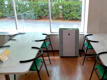 清掃・消毒作業はもちろんのこと、施設内の換気運転に加えて窓や出入口等においても適宜換気を実施。また、ソーシャルディスタンス等の注意喚起も行っています。